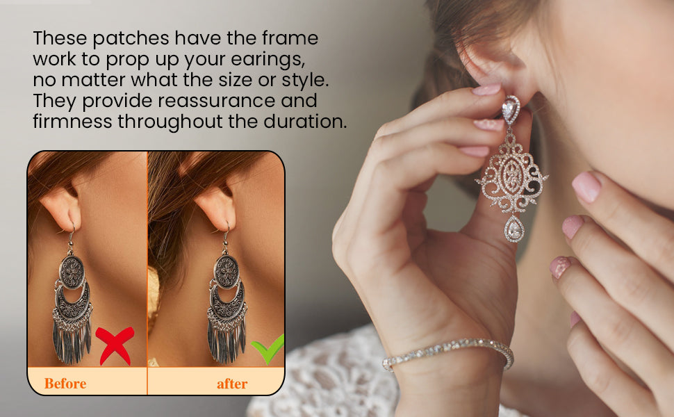 Designed to discreetly reinforce and protect the earlobe, this earring support solution offers a non-invasive way to manage the effects of wearing heavy or oversized earrings. The transparent adhesive patch sits behind the ear, redistributing the earring’s weight to minimize strain on the skin and piercing. It is suitable for regular use and compatible with various earring styles, including hoops and drop designs.